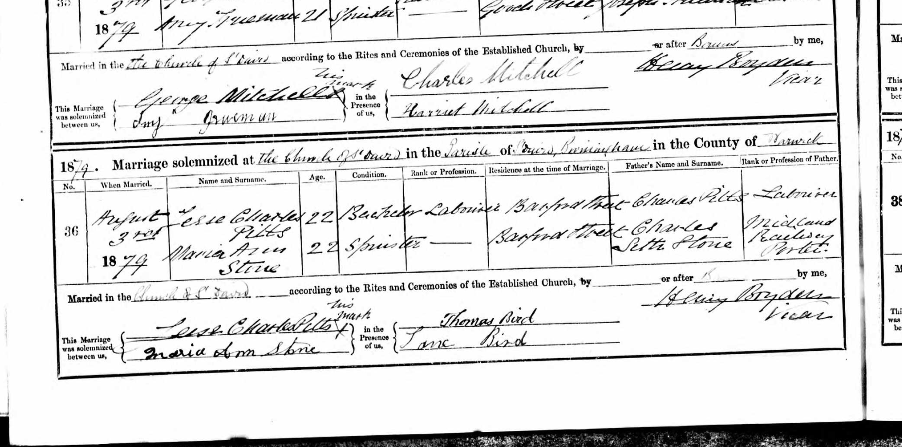 Marriage, Family of Pitts, Jessie Charles and Stone, Maria Ann
