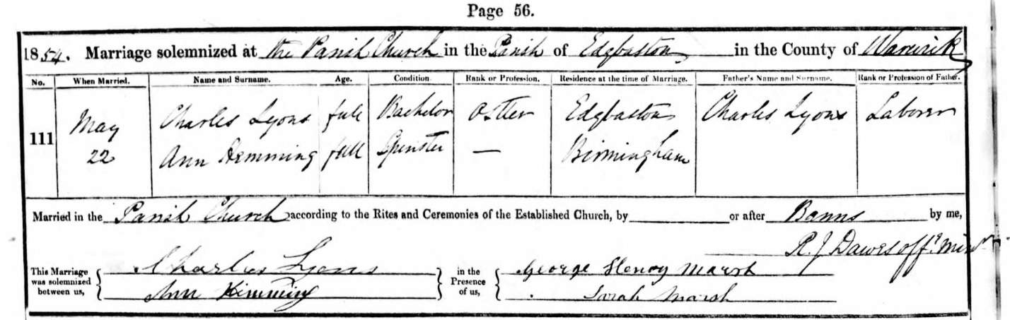 Family of Lyons, Charles and Hemming, Ann