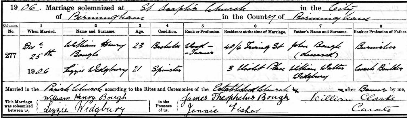 Marriage, Family of Bough, William Henry and Wedgbury, Lizzie